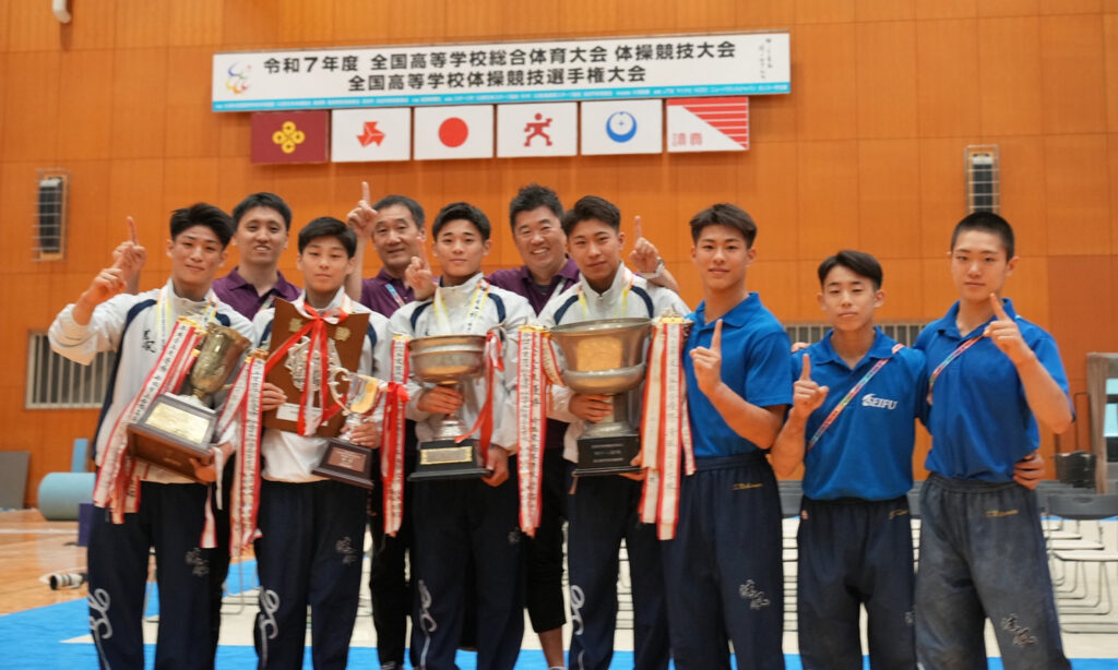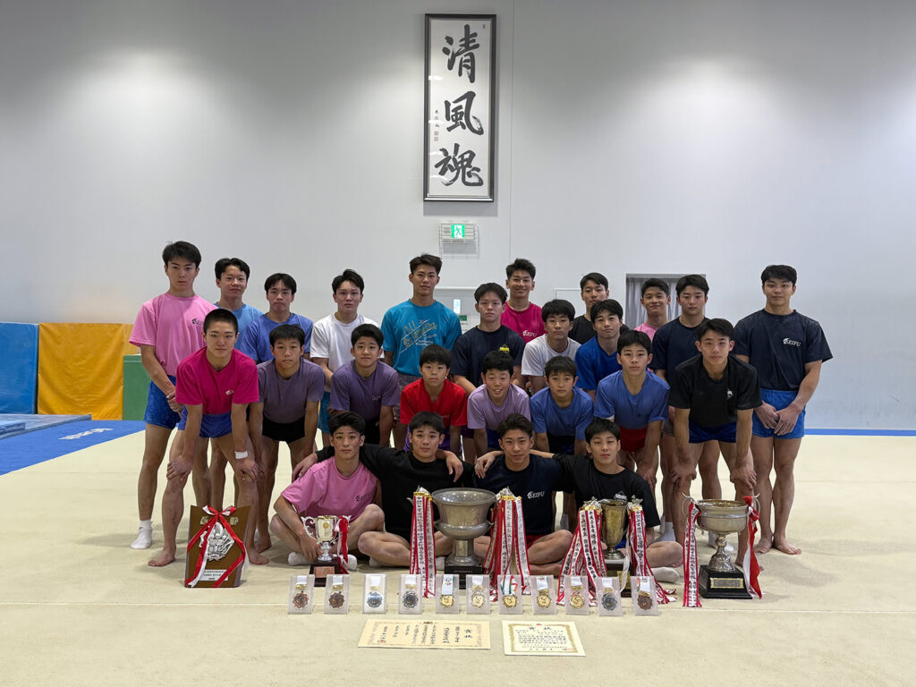 この度、島根県で行われました全国高等学校総合体育大会(インターハイ)において、本校体操競技部が4年ぶり18回目となる団体総合優勝を成し遂げました。