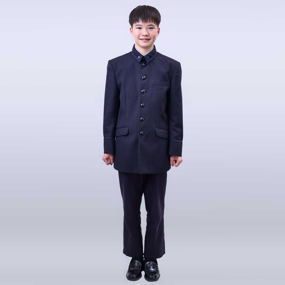 「襟を正す」をテーマにクラシックかつモダンな襟のデザインで伝統校の存在感をアピール。袖を通した時、気持ちが引き締まり、清風生としての心構えを再確認できるような落ち着いた雰囲気に仕上げました。袖にも黒と清風伝統色のブルーのテープを配し、伝統を受け継ぎ正義感あふれる清風生の風格を表現しています。