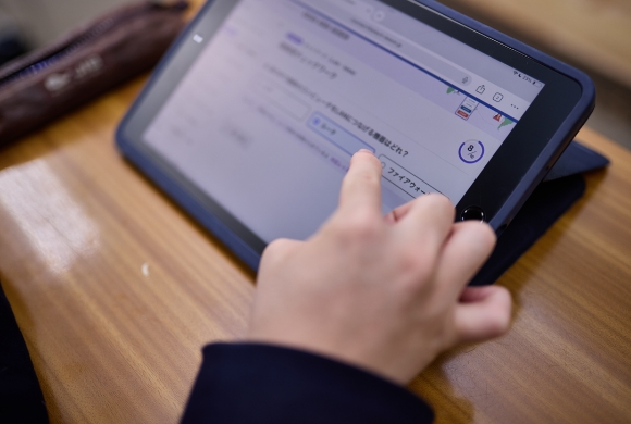 各教科の学習に役立てるため、清風学園では情報機器を活用したICT教育にも注力しています。生徒各人に効果的に、限られた学習時間で効率的に運用する観点による取り組みです。
