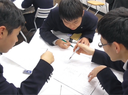 大学入試で求められる「主体性・多様性・協働性」を育むため、アクティブラーニングの授業に力を入れています。