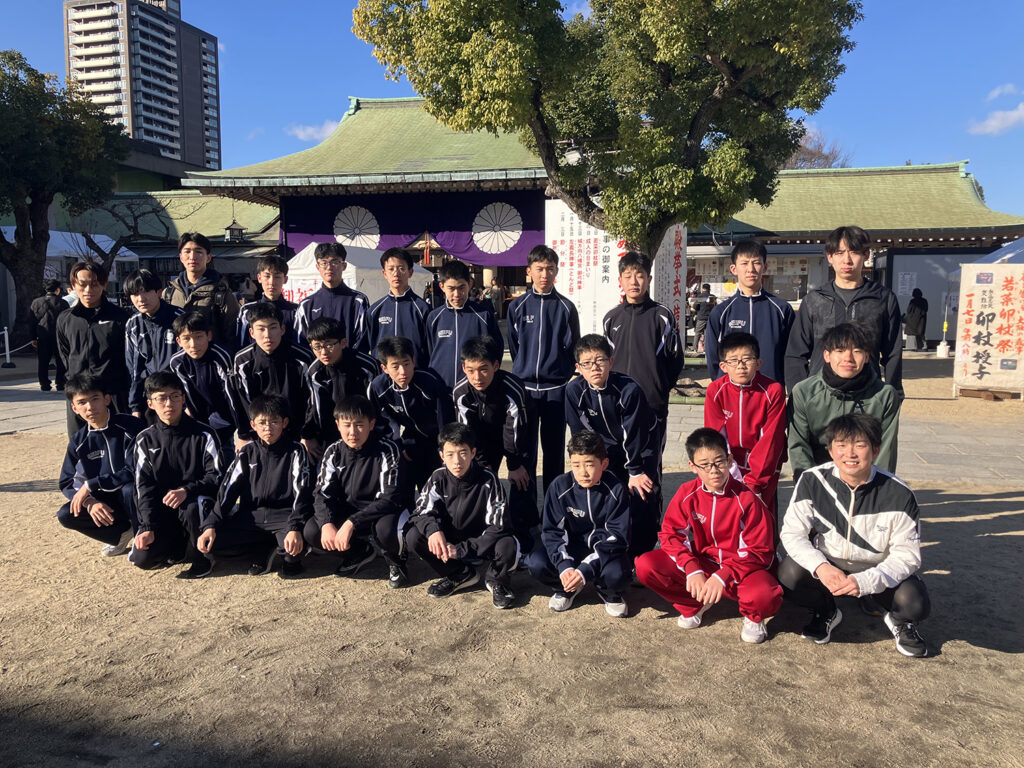 練習始めは安全祈願と必勝祈願を兼ねて、学校の近くの神社までランニングをし、部員全員で初詣に行きました。