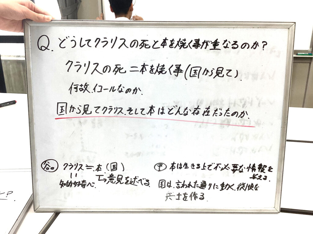 『華氏451度』の読書会が終わりました。物語の世界でなぜ本は焼かれるのか、本とはどのようなものとして位置付けられているのか、またさまざまな装置や登場人物にはどのような意味や役割があるのか、などのテーマについて、部員全員で議論しながら考えていきました。部員の間で見解が分かれるところもありましたが、それも含めて充実した議論ができたと感じています。