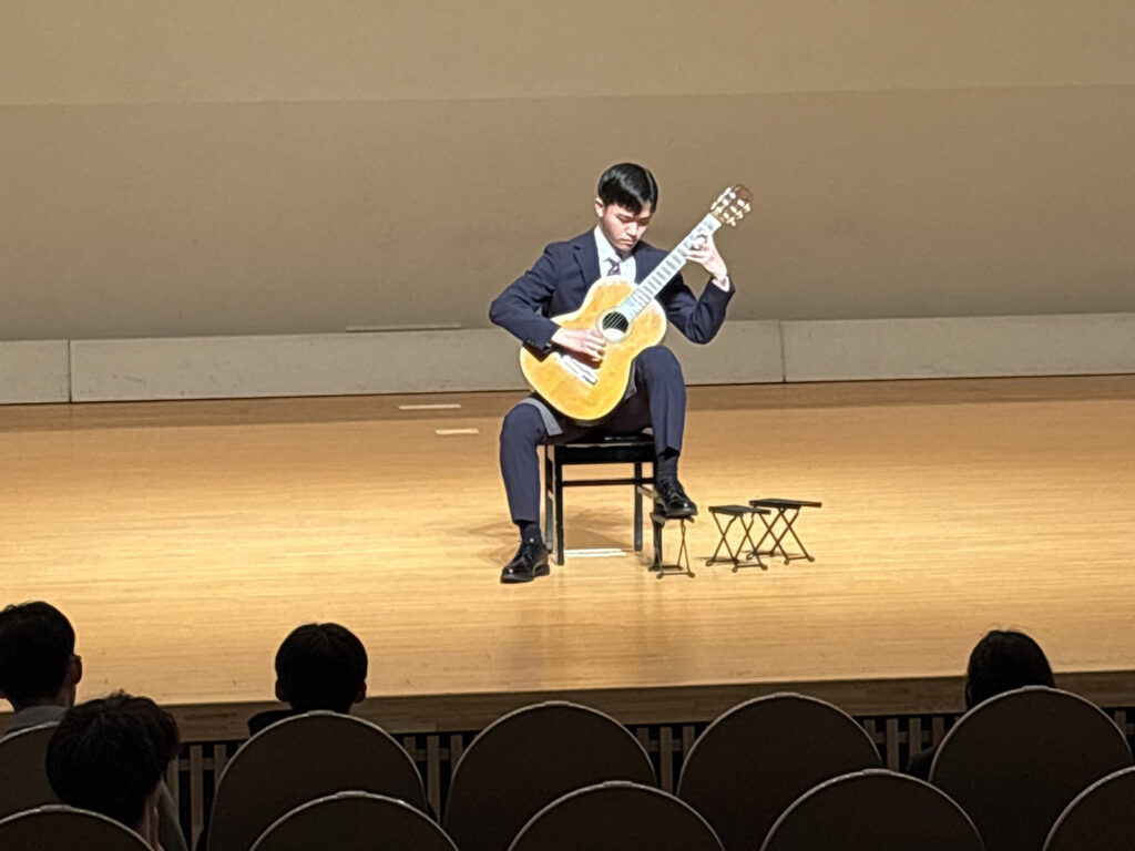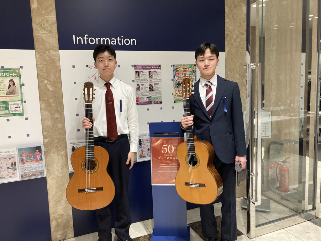 4月11日、12日、大阪府門真市にて、第50回ギター音楽大賞が開催され、高校生部門において、本校クラシックギター部の部長、伊家村佳太君が銀賞、副部長、乗松隼輝君が金賞を受賞しました!